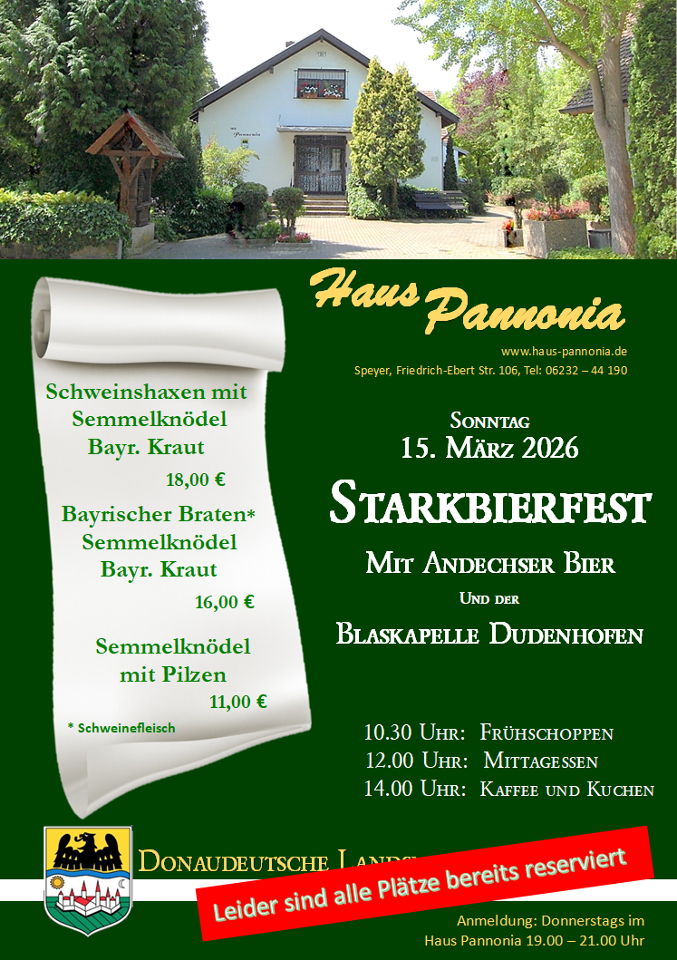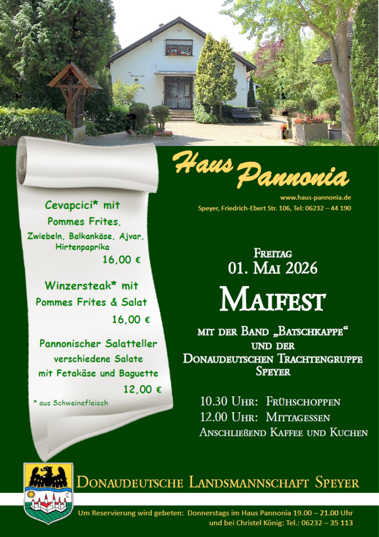 Herzlich willkommen auf der Homepage der Donaudeutsche Landsmannschaft Speyer – im Haus Pannonia.