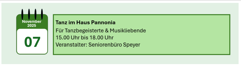 Hier finden Sie Hinweise zu Veranstaltungen, die im Haus Pannonia geplant sind. Wir weisen auch auf Veranstaltungen hin, deren Verantwortlichkeit nicht bei der Donaudeutschen Landsmannschaft liegt. Bitte beachten Sie die Hinweise auf den Veranstalter.